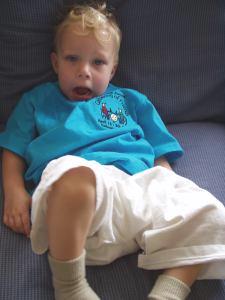 I did no sewing last week, as the boys were having trouble sleeping and I didn't want noise from the sewing machine in the next room to add to the problem. Actual sewing content will have to be limited to this cute pic of B lounging in his fast pants. He's telling me to move out of the way so he can see Blue's Clues.