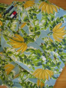 And the most exciting of all, remember this fun banana shirt that I wanted to salvage the material from? I removed the sleeves, leaving me with a rather odd muscle shirt and enough fabric for the first pair of banana pants. I've still got the waistband and hems to do on these, but they're going to be great!