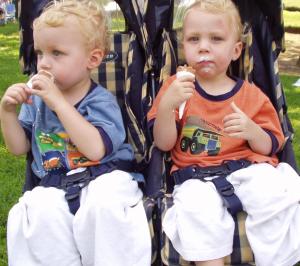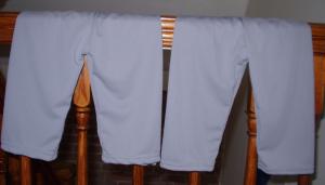 I've been busy working on the boys' kwikies and fast pants. I finally finished a second pair of grey kwikies so the boys can match. They went real fast this time. I think I'm getting the hang of this! And as the weather is getting warmer and the sun stronger, I figured another two more pairs of white fast pants were in order. They're just the thing for running around on the playground on a hot day, or eating ice cream on the 4th. Loose and fun, light and, most important, easy to wash!