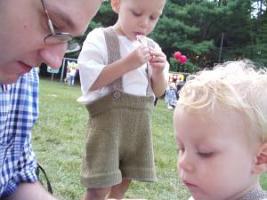 You know it's fall when the Oktoberfests begin. The real Oktoberfest won't start for a few weeks yet, but New England's largest Oktoberfest was held just outside of Boston last weekend. And as a good german-american family, we were there. They boys in their knitted lederhosen, of course.