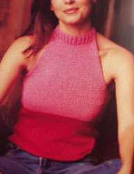 I've been wanting to make that halter from Hollywood Knits as well. There are also a couple of cute tank patterns in my Twilleys mag. I'll bring it in a couple of weeks. And I'm drawn more every day to the pink cardi that you showed me in Rebecca. Man, I better stop commenting and start knitting. :) P.S. I have an appt today in Brookline and hope to (finally!) stop by A Good Yarn. Yay!
