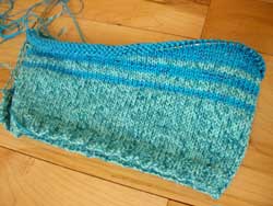 Hey Alison--thanks for your nice comment. The sparkly stuff has definitely changed my gauge for the parts that use it, so that the stripes avec sparkle are sort of raised in the fabric. I'm hoping that once I block the back, I'll see a difference in that at least. I have to say that almost every time I've switched colors so far (except between the turq and blue), I've looked askance at it and wondered if I should go on or go back . . . it's going to be interesting to see how it turns out in person.