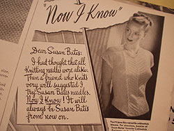 It seems that some things haven't changed even in fifty-five years. We're still buying Susan Bates' needles.