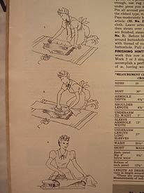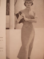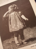 Totally 40's! I couldn't even imagine knitting this suit dress - at a gauge of 7 st./in. Look at her waist - no wonder they had to wear these! Check out the sweet dress on this little, bottle-fed cutie. I do love this jacket though. Unfortunately, you need(ed) to send away for the pattern. It would be fun trying to redesign it, wouldn't it?