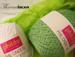 The guys from Threadbear Fiber Arts Studio rule! They just got some Phildar Onde in and you know I had to get some. After seeing Theresa's incredible sweater in the chlorophyll colorway, I was sold. And if Rob & Matt are going to make it so easy to get the yarn, well, what'da gonna do?
