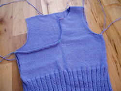 More linen drape/shoulder news: Julia just finished short rowing the shoulders of her linen drape sweater. It looks like it's gonna fit her perfectly! Sarah is teasing us with a picture of one strap of her almost finished linen drape tank. I can't wait to see that one all done! Heidi's Stripes Go Round in linen drape top now has sleeves. Check out the beautiful colors she's using. And Cynthia reports that she's all done with her linen drape project. Think we can strong-arm her into sharing a picture with us??