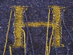 Update: For those who have recently asked me about the intarsia on the weasley sweaters, here's a picture of the wrong side of the "H".