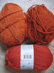It's time for my hat class again, so I gotta make myself a hat. I wanted to make one to go with my new orange bliss scarf, but I can't afford any more of that Cashmerino Superbulky. And I'm all about using up leftovers now, you know? So I pulled out all the orange leftovers in my stash.