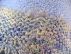 Just as I suspected. The cast on edge was all but completely rubbed away, and stitches had begun to fall. I had to put a brief hold on the holiday knitting until this was taken care of! And the other day, I find another stitch making a run for it. A mother's work is never done.