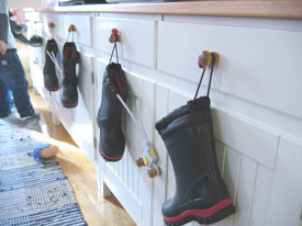 Orli, the boys just spontaneously started hanging up their snow boots on the cabinets. When they ran out of boots, they moved on to the sneakers (see in the very back?). We have stockings hung and we did Nikolaus already on Dec 6th, so I think they were just playing around. It looked pretty Christmas-y, so I kept them up for the day.