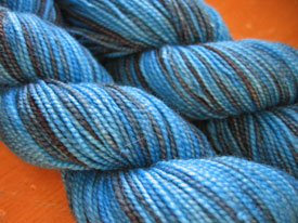 Koigu socks in any color would rock my boat! Besides, everyone wears jeans and blue goes with jeans...