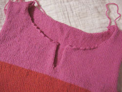 those are some beautiful colors and the stipes are really fun. Did you consider doing s turtleneck? Or a half-turtleneck? That way the emphasis would be on the stripes and they would not be broken up with a neckline... You would get more of a geometric look - just a thought....