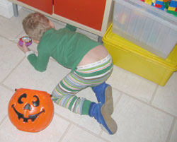 And look what he left in mommy's (knitting) basket.
