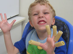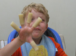 Do you boys do that with olives? Mine will put anything on their fingers but they like black olives because it makes it look like they have frog fingers or something. Kids are just too silly.