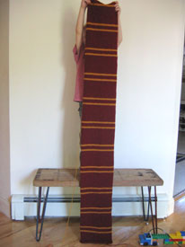 I have to say, I've got a little crush on this scarf. Of course, it's for the store and not for me. As much as I like Harry Potter, I probably wouldn't wear a Harry Potter scarf ever. But I've truly fallen for this maroon color (as evidenced by my having started a t-shirt in exactly the same color). And I think I'm finally sold on long scarves too. They seemed silly to me before, but all I want to do now is wrap this long tall drink of scarf around my neck.