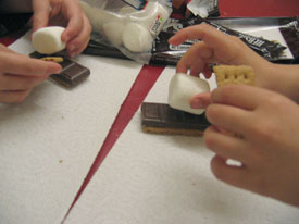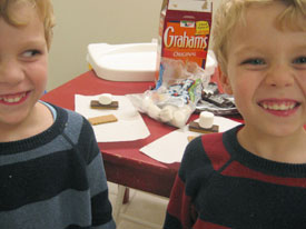 Ooh, s'mores! Almost had to break down and go to the store to pick up supplies for my own batch! Gotta say, I love the sweaters that your boys are wearing in the pictures....
