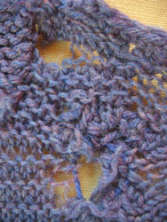 And unfortunately, it's not just the holes at the edges; all the yarn is wearing dangerously thin. I've told the boys that I can try to rip back the last few inches on each end and knit on new edges. I have plenty of yarn to make new edgings but not to knit another foot of blankie. But still, the weak middle sections will wear away soon enough and then there'll be no more original blankie left!