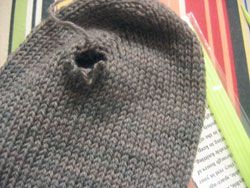 I found a hole in a wool hat I knit for the kids. I think one child wore it a few times. A pair of socks I knit last year, a hole, on TOP of the sock. I thought I had moths, but I have yet to ever see a moth in my house, and my wool is all stored air tight with cedar. ODD.