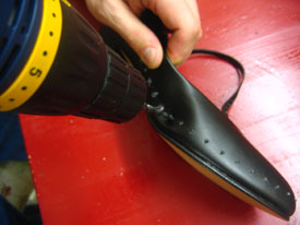 Since there was no way that marker marks would be visible on my black shoes, I used a thumb tack and poked tiny holes to mark where to drill.