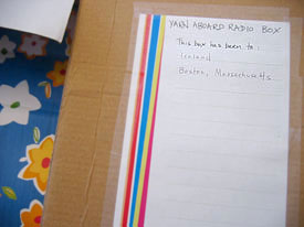 This was all Amanda's idea. She received the drill box that I sent to Carola with her sockapal2za socks in it in a little swap they did. She was just as tickled by the idea of the drill box carrying yarn as Carola and I were and cooked up this idea to do a sock yarn secret pal thing with each of us sending yarn to our pal in the drill box. After a couple dozen people signed up, it seemed a bit much to ask that that one drill box make 20 trips to varying places around the globe, so I offered up the radio box from Carola for half the group. You gotta check out the map of all the cities the two boxes will be visiting!