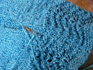 With this ribbon yarn and it's snags and twists, I was worried that the seaming would be a bear, but not so far. It's actually coming together rather quickly and rather easily. Phew. Can I change my tune on this yarn?