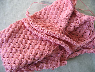 I'm glad you have been getting lots of knitting time in, but I hope the weather and everyones health picks up! I can't wait to see it finished, I have a soft spot for everything pink!!