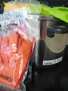 I picked up some more dyeing supplies at IKEA yesterday - a new pot and the most comfortable plastic gloves that ever were.