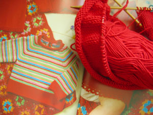 No, Elizabeth, I'm not very good at knitting continental in the round (and even worse at continental on dpns!), so I'm knitting this with my right again. And all my design projects are being knit with my right hand, since I want to do my best knitting for them. But resting it for the last couple of months with continental projects and cutting down on my computer use really has helped my right hand a lot. I don't have any soreness in my wrist anymore.