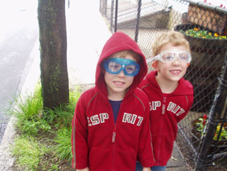 The boys wear their swim goggles every time we go out. And they're building Lego boats.
