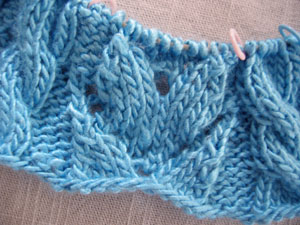 I just finished knitting the Debbie Bliss Shrug in the same color blue and I am about half way done with crinkle in the same color pink.