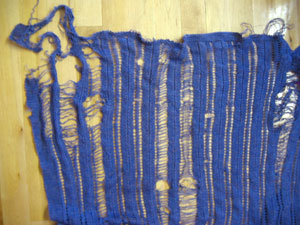 My son is seven years old, and has a ragged old blanket much like your son's, knit by his grandma as a newborn gift (before I learned how). I remember an episode of "Friends" a long time ago where they had a flashback to Chandler's college days--he had a raggy old blankie that he brought to college as a "wall hanging." At the rate my son's going, I fear his "Grandma Blankie" will be hanging on his dorm wall!