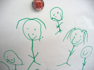 Look, S even included the baby! It's up high because "it's far away". Wow, the boy understands perspective - see what four days of school will do? I love that he has his own little S magnet to show it off.