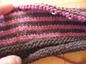 Unfortunately it's coming out small. Grrrrr. I thought it was just me until I really did the math and discovered that following the pattern, the brim of the hat is only 17" around and the body like 20". Doesn't the picture make it look like it should be a poofy hat? Well, I want it poofy. I need funky here! So I'll be ripping out the above and starting again with an extra 21 stitches (yes, the pattern is a 21-stitch repeat, aaaaahhhh!).