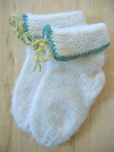 These socks have so much charm - the garter stitch flap and green crochet edging are really special. Don't you think I have to make a little sweater and bonnet to match these adorable little socks?