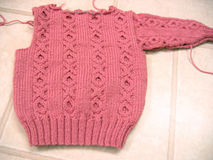 I'm not seaming anything today, but tomorrow I am seaming a very girly (knit in two shades of pink) Weasley sweater for my one-year-old niece. The knitting is almost finished, I'm on the last sleeve and then I have to seam, knit the neckband, and knit and attach a heart instead of duplicate-stitch an "I" for her name. I'll send picks to you when I'm done :)