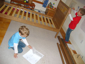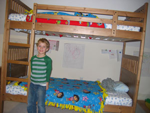 Actually, the bunk beds and the IKEA trip were really no problem at all. The boys easily decided who was going to be up and who down. S really wanted the top and B realized that if he were below, he could always be the first one out of bed and being first is what he cares about most anyway!