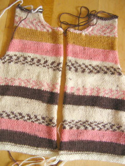 I love the start of that sweater. I'm not loving sock knitting lately, but I'm going to hang on to some of that stash for future baby sweaters!