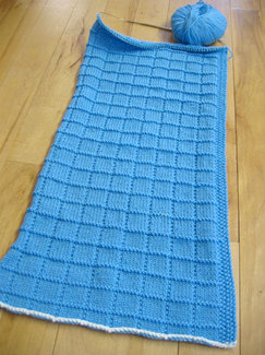 Seems like you're making progess pretty quickly! I like those square stitch patterns using knit and purl. They look nice and crisp, and the blanket is just the right way to showcase them.