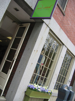 Next we headed down to Salem (a whole like four miles away) to Seed Stitch. We'd heard raves about this store and it was lovely. It reminded me of purl in NYC with a table full of luscious swatches to greet you at the front door and all kinds of samples labeled with beautiful little tags. There wasn't nearly as much yarn there as at purl (even though purl is only about a quarter of the size), but like purl, they have only chosen the best yarns so every single yarn in the store is a gem.