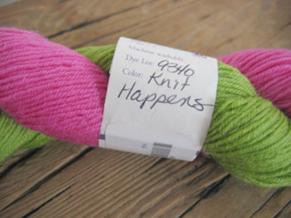 Although I will give a word of warning that one of my knitgrrls, Good Girl Purl of the PurlingPs, knit up her Knit Happens colorway, and the stripes were very narrow. Like one row per color.