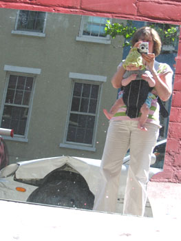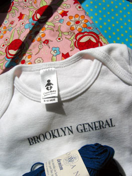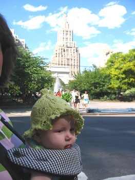 That's wee in front of Washington Square Park (hey, give me a break, it's hard to get baby and archway in the same picture while holding baby in a bjorn!). Yes, we went straight downtown to visit purl, where I didn't even look at the yarn. I know, I know, but this visit I decided to go easy on the yarn and instead went to purl patchwork to pick out some pretty fabrics to sew some simple dresses for baby L. I'm not very skilled with the sewing machine, but if there's ever going to be a time when I can make clothes for wee one it's now, when a basic little romper will look so cute on her.