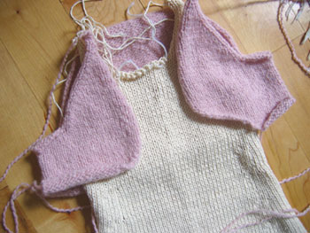 Looking at these sorts of work-in-progress pictures with yarn ends everywhere, I can hardly believe that the garment will ever look neat and orderly. Sort of like my home nowadays.