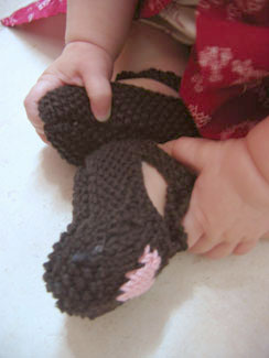 Oooh! Those are just too delicious for words. They would look simply fab alongside the uber-cute pink & brown seed stitch jumper that I recently discovered in Easy Baby Knits by Claire Montgomerie!