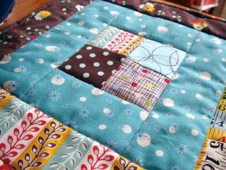 Very nice! I love all your fabrics and the arrangement of them! Great little starter quilt!