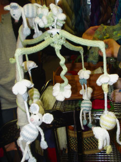 Finally, the one thing I was most interested in seeing in person, besides Susan of course, was that incredible mouse mobile. Wee one touched some of the mice tentatively, but the boys really liked it. They came by and kind of mauled it after I took this picture.