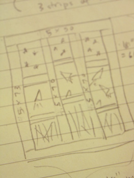 I sketched out what the quilt would look like for final approval from S before I bought the fabric. I've learned from previous design collaborations with the boys that they are completely incapable of imagining the design in the book in any other color or print. Nope, the picture's got to be exactly right or they'll keep insisting that they didn't want pink and yellow. So I even made a little mock-up in Photoshop so he could really see it.