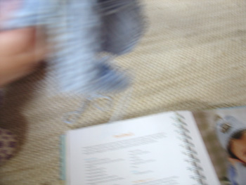 I like it, very very cute. I just started reading your blog (still reading archives, lol); in case I missed it, please tell me about those circulars - the diameter looks so small, I NEED THEM! You have a wee one that "helps", I have two kitty brothers to help me. One would have been lying on the book while the other one takes off with the hat; maybe I should rethink turning my new project/new yarn swatches into kitty toys. You make me smile........ keep up your great blogging!