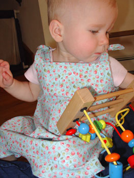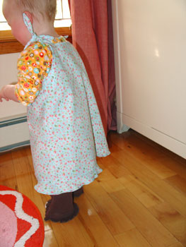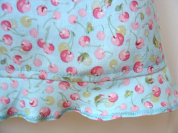 I love that cherry fabric. When I was little, not a lot older than that sweetie up there (okay, perhaps a few years older), my mom made me a dress that was white with little embroidered cherries on it and larger appliqued cherries where the red shoulder straps joined the bodice. I still remember it vividly.