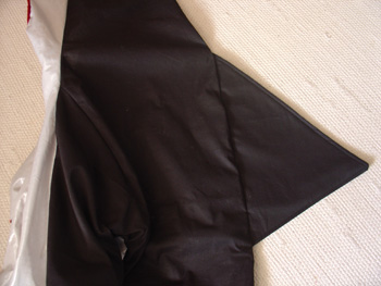 Wow! Three costumes & with 3 children to tend to! I'm really impressed. I finished the shark costume yesterday although I had a moment of panic when I realized that I had somehow lost the pattern pieces to the eyes & had to improvise. The shark costume I made is different - it has a fin & tail on the back of the jumpsuit & the hood comes to a sort of point (the snout). The hood is in 4 pieces - 2 for the back & the 2 front pieces. The eyes are sewn & stuffed & sewn into the seams between the front pieces & the back pieces & the teeth (also lost thoe pattern pieces) are sewn to the forehead part of the front of the hood. It seems to me that the patterns for the costumes I've made have been way less well done than other items & it's really annoying. For example, the opening to the hood is squared off (where the side of the front pieces meet the forehead portion of the front pieces) & you are supposed to just tuen it under & sew a quarter inch hem. That is clearly impossible to do without some kind of mitering but the pattern didn't allow for that or have any instrudtions as to how to handle that problem. Fortunately the fleece that I used was flexible enough that I was able to jerryrig a hem but I'm not pleased with how it looks. The other thing that was weird is that the pattern called for stuffing the tail with polyfill but nothing for the (largish) fin which would have just flopped over without the double layer of super stiff interfacing I used & who ever heard of a shark with a floppy fin?