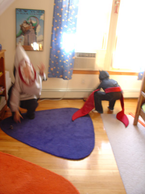 Look at those halloween cuties! The boys were so excited about their costumes, they insisted on putting them on about three hours before trick or treating time and playing in the house with them on. They just couldn't wait!